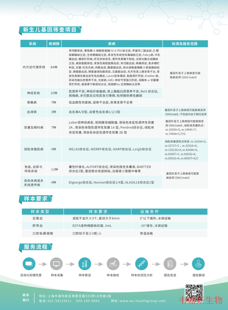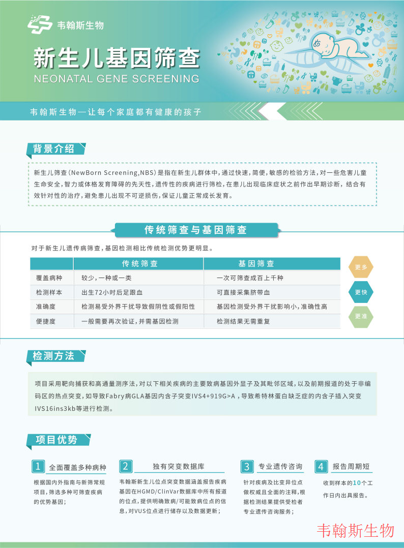 因为宝宝的年纪比较小,很多遗传性疾病的症状,体征还显现不出来,可以通过基因检测来进行诊断。临床上对于一些多发畸形,严重畸形,特殊面容,特殊外观或者是喂养困难,体重不增等症状的宝宝,建议进行基因检测与排除遗传代谢性疾病。