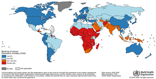 图1 2019年全球<70岁人群癌症死因排名[1]