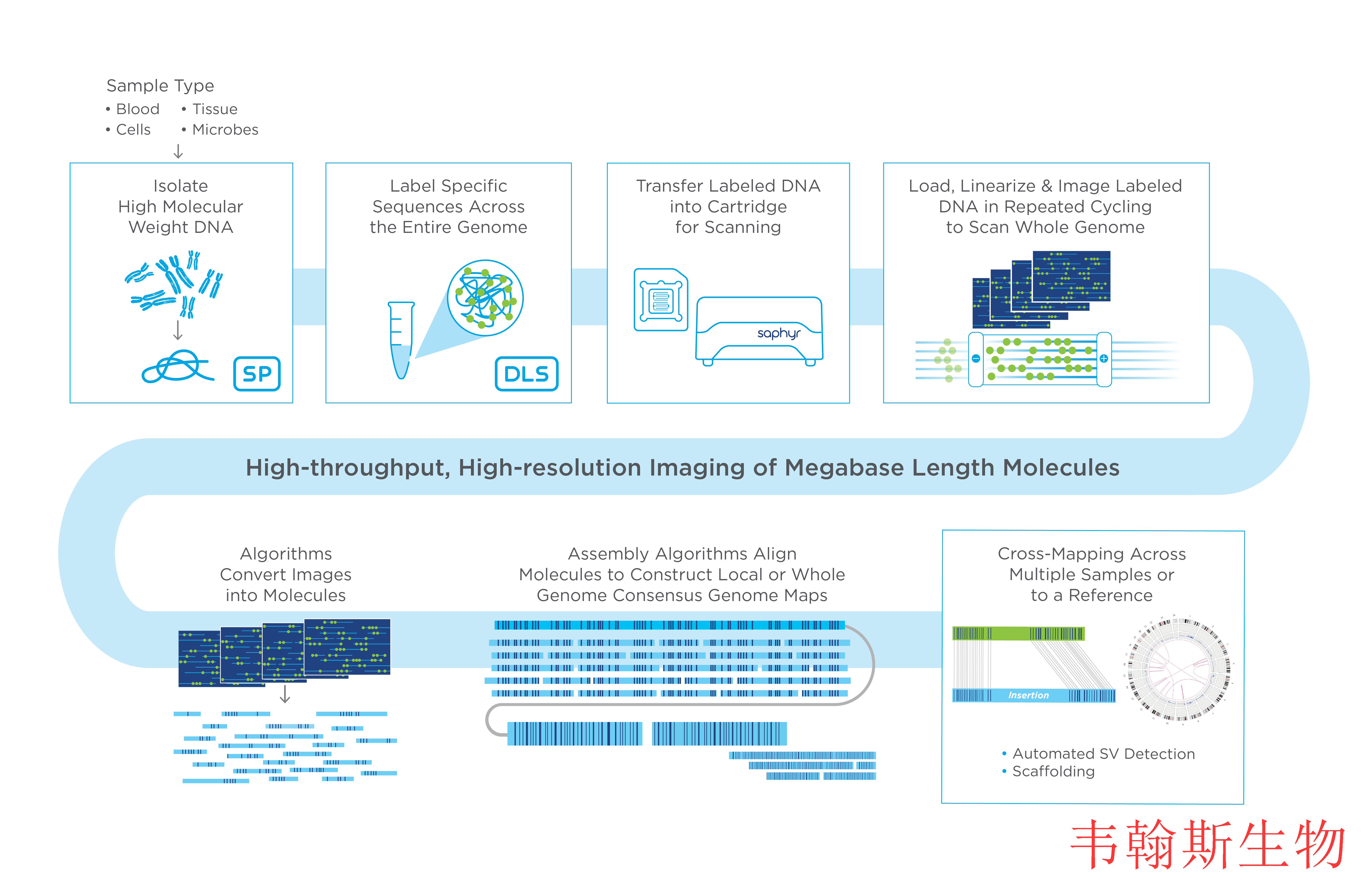 Bionano平台基于 Nanochannel array 技术可以高通量地对通过 Nanochannel 的被荧光标记的 DNA 分子自动拍照成像,完整的还原单分子结构。该技术不需要将 DNA 分子打断成短片段,也不进行扩增,因而具有较长的读长,最长读长可达 Mb 级别,其能够真实地展示基因组信息。该技术对于获取高复杂区域重复序列信息、检测基因组结构变异有着无与伦比的优势,是当前基因组研究的有力武器。