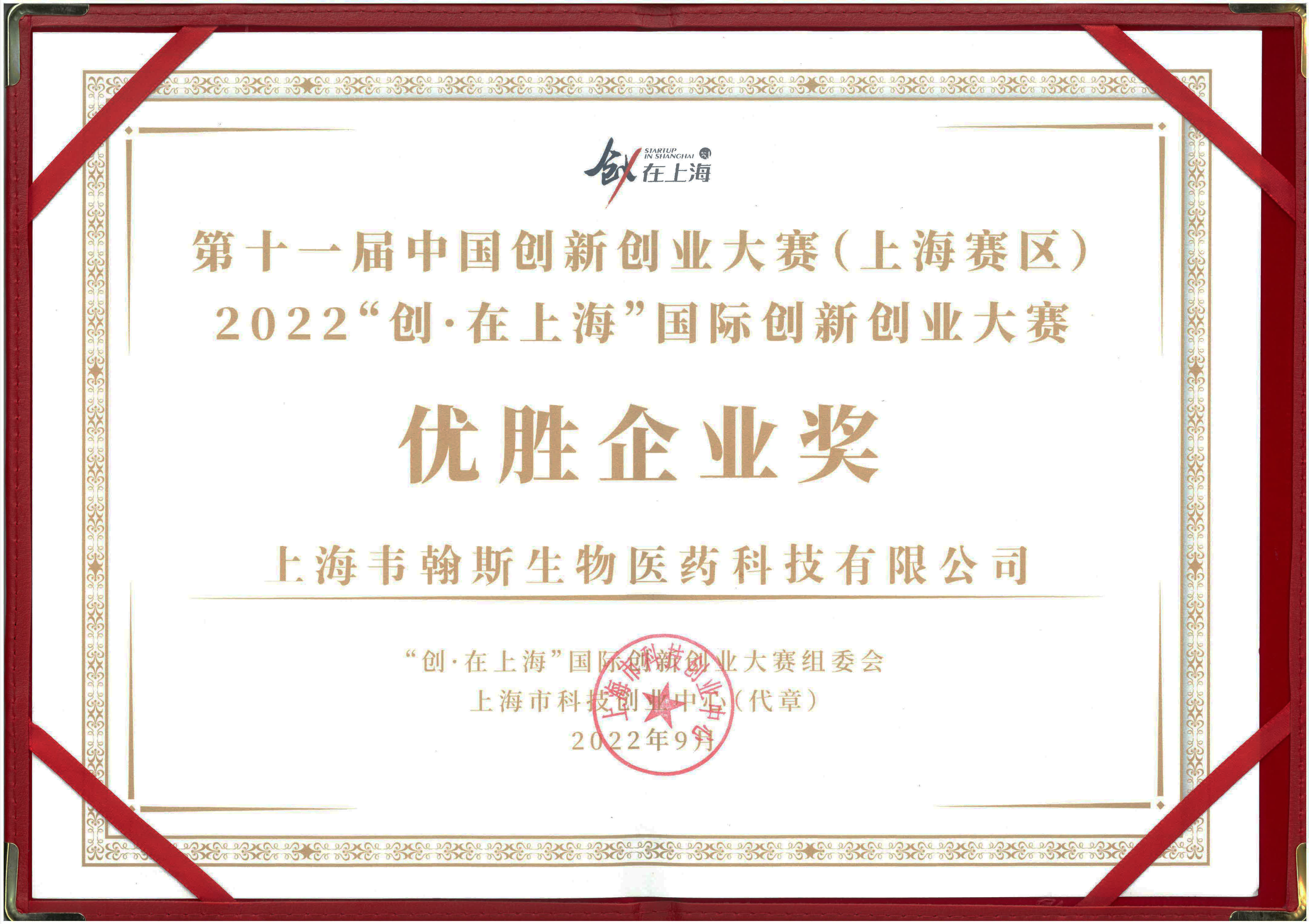 创·在上海 | 韦翰斯生物荣获第十一届中国创新创业大赛全国赛(上海赛区)优胜企业奖