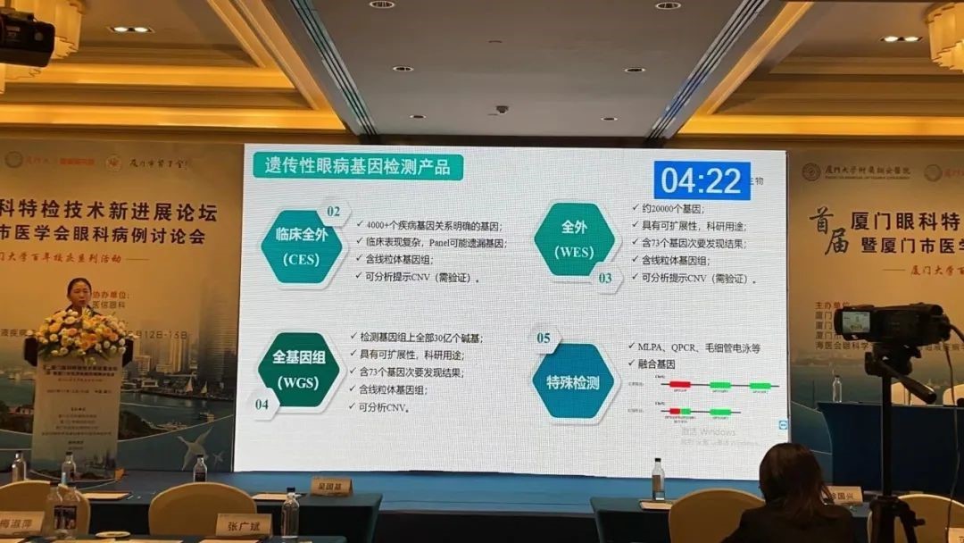 韦翰斯生物杨熙博士以《因‘眼’而来-遗传性眼病基因检测》的课题针对遗传病眼病的发病率,眼科中常见的遗传病,如视网膜色素变性,遗传性青光眼,Leber视神经病变,黄斑营养不良,角膜营养不良等的遗传异质性及临床复杂性等特点进行阐述,并对韦翰斯公司眼科方向的基因检测产品和技术的优势作了综合介绍,除常用的基于NGS平台的眼科Panel,临床全外或全外显子测序之外,公司针对OPN1LW和OPN1MW同源融合基因导致的红绿色盲检测解决方案赢得了现场专家的认可和赞许。