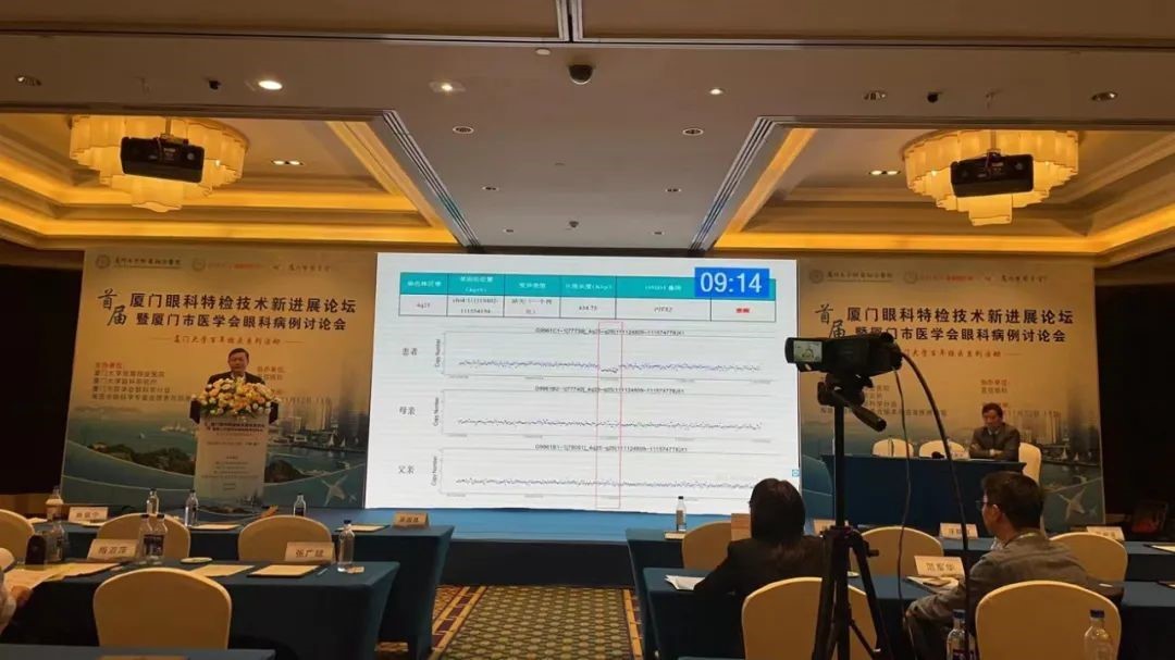 厦门大学附属翔安医院的梅淑萍教授在《罕见的基因突变导致先天性白内障》报告中介绍了一例疑难病例,先证者入院时表现为双眼眼球水平震颤,玻璃体浑浊,虹膜和前囊膜粘连紧密,大量皮质残留,后囊膜机化,眼压低,眼球塌陷等。患者姐姐经过白内障手术,无眼球震颤,双眼后囊膜粘连,玻璃体轻度浑浊,散光等。梅教授提到先天性白内障的致病基因高达上百种,此案例在经过韦翰斯生物提供的家系全外检测后,发现先证者及其姐姐中罕见的FYCO1基因突变,并提示先证者存在染色体异常可能(通过测序和生信分析,先证者出现X染色体加倍,即XXY-克氏综合征患者,导致后续出现不育表型,可提前进行生育指导)。梅教授对此表示感谢,并建议先天性的白内障患者应先行基因检测,了解遗传病因,对疾病的进一步研究可以提供很大帮助,并多次提到韦翰斯生物检测方案完整,符合临床需求,反响热烈。