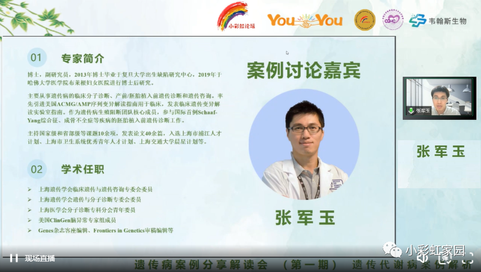 论坛速递: “小彩虹YOU-YOU”遗传病案例分享解读会 第1期 圆满结束